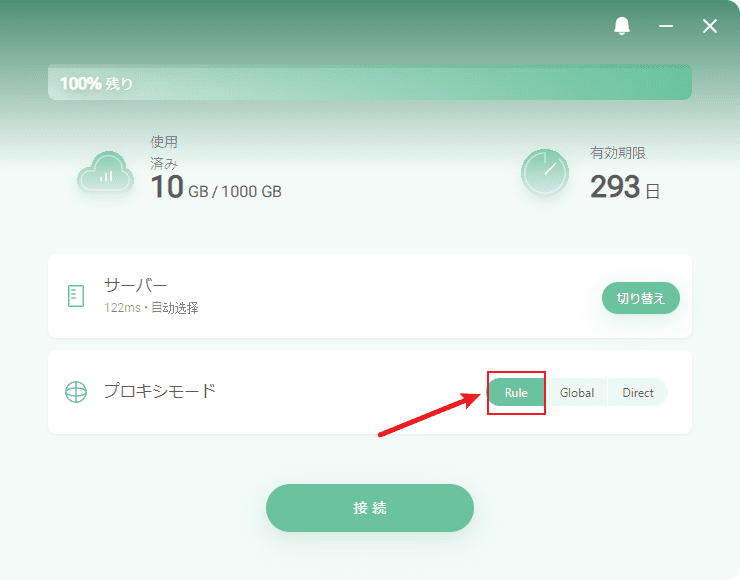 通常はルールモードを選択してください。 グローバルモードは、ソフトウェアや特別なウェブサイトをダウンロードする場合にのみ使用してください。